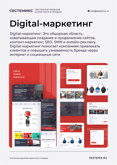 SEO и контент-маркетинг:Оптимизация сайта для поисковых систем и создание качественного контента помогают увеличить видимость в интернете и привлечь органический трафик.